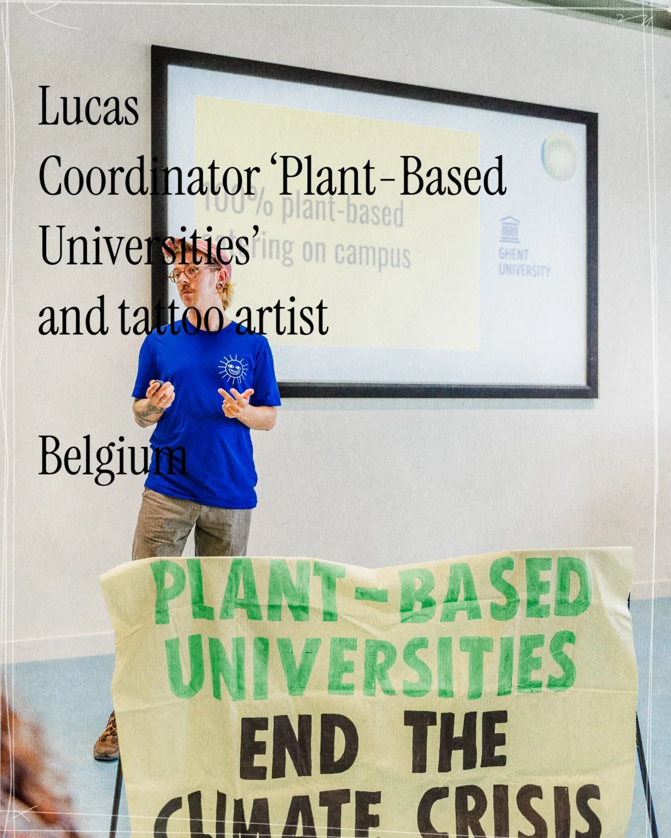 Based in Belgium, Lucas has spent the last decade working at the intersection of advocacy and art as a tattoo artist and an investigative animal rights activist. In November 2025, he transitioned into a role focused on systemic change by becoming the Belgian Coordinator for Plant-Based Universities. In this position, he mentors student teams to build strategic campaigns advocating for plant-based catering on university campuses.